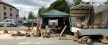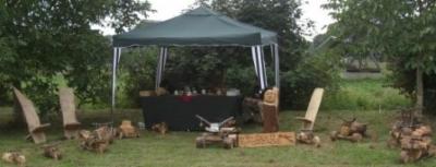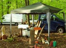 Just Stop / Burgpreppach/ Hoffest ...das war auch das allerallerallererste "live-Auto" der Ökogaragen-Geschichte...und bei Einbruch der Dunkelheit mit Schwedenfeuer und Finnenfackeln! live geschnitzt wurde der "Just-Käfer" vom Just-Stop-Schild...!