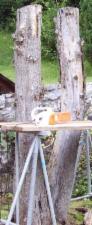 ...und was es auch schon gab ist : ....Rainer, seine Säge und ein abgebrochener Baum im Dickicht eines Eltmännischen Urwaldes .......bei 35° C...